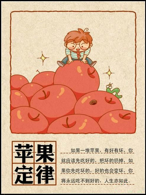 如果一堆蘋果,有好有壞,你就應該先吃好的,把壞的扔掉,如果你先吃壞的,好的也會變壞,你將永遠吃不到好的,人生亦如此。信息源:揭陽招聘網_www.gzesa.com