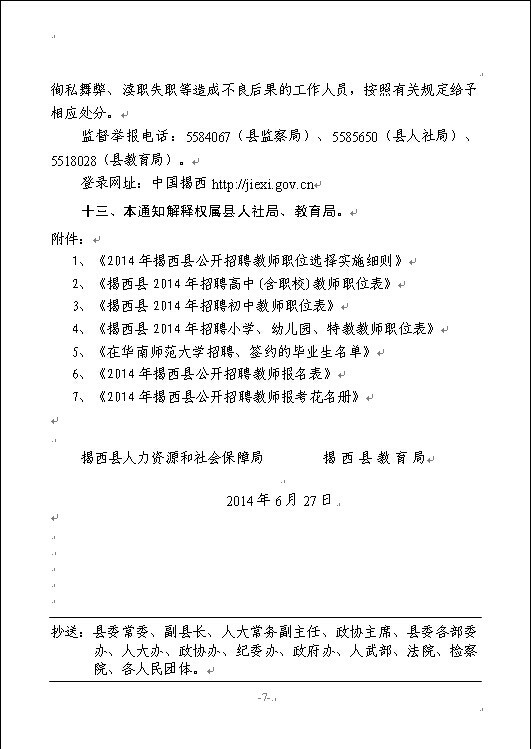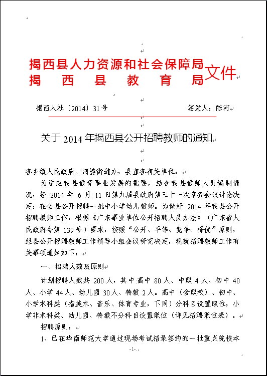 2014年揭西縣公開(kāi)招聘教師的通知